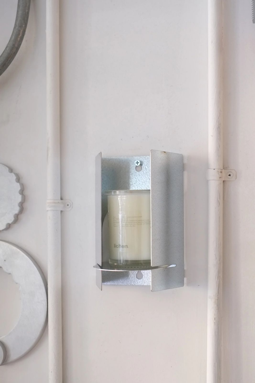 This wall mounted candle holder is inspired from left over components from our wall sconces. Please be careful of sharp edges when folding or handling. 7"H x 4.5"W x 3"D