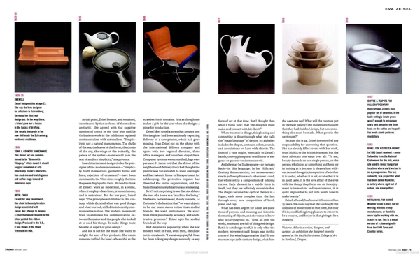 In 2001, many of us have statements to make about modernism. But very few people (except Philip Johnson, who is Zeisel’s age), can speak with firsthand experience of most of the design movement’s decades.